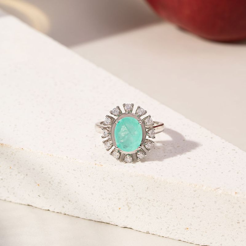 O anel oval de fusion turmalina com zircônias brancas em banho de ródio branco é uma joia sofisticada e vibrante. A pedra oval de turmalina fusion encanta com sua tonalidade exuberante, enquanto as zircônias brancas ao redor adicionam brilho e elegância. Um acessório perfeito para composições refinadas.