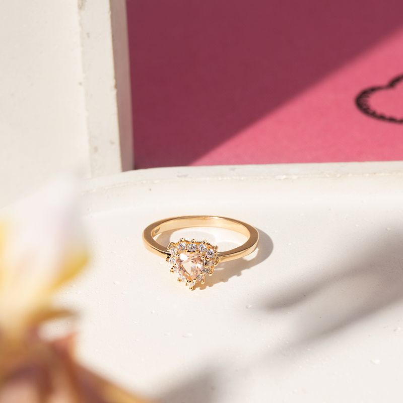 O anel coração com cristal morganita traz um brilho romântico e sofisticado. O tom rosado do cristal ganha destaque com o contorno de zircônias brancas, criando um visual delicado e elegante. No banho de ouro 18k, a peça fica ainda mais charmosa e iluminada. Leve, moderno e feminino, é perfeito para quem ama acessórios suaves e cheios de estilo.