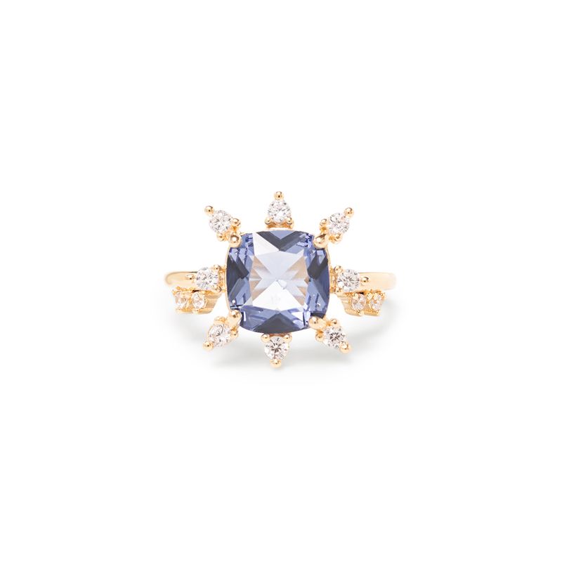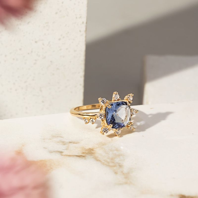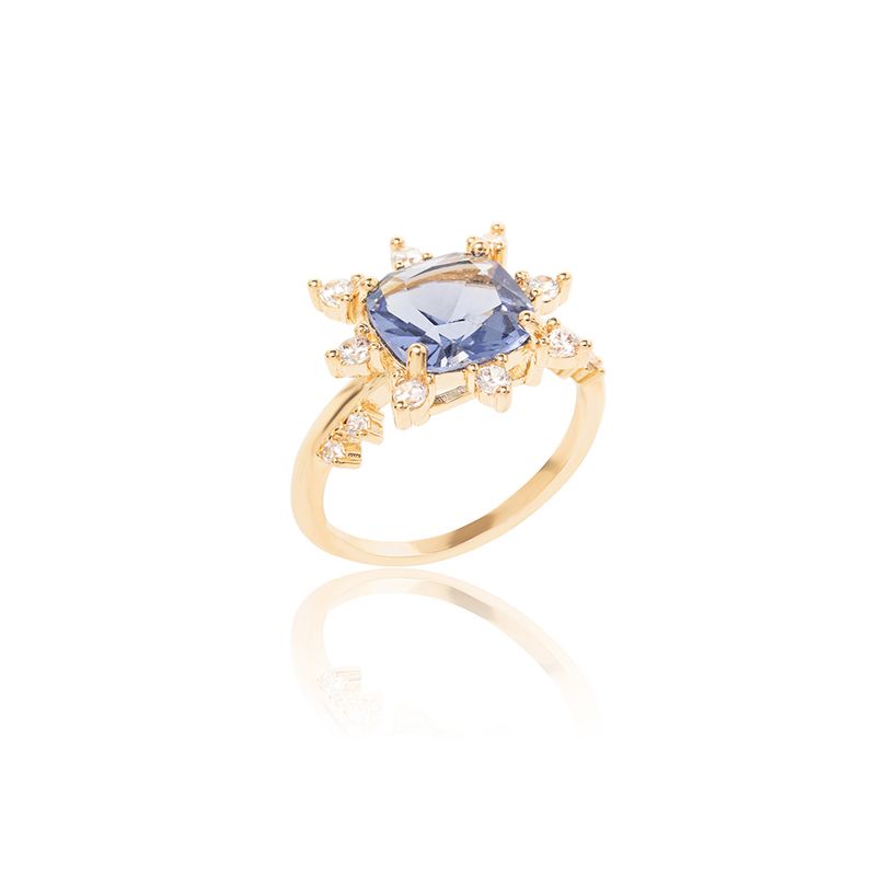 Anel Coroa Cristal London Blue com Zircônias Brancas - Banho de Ouro 18k