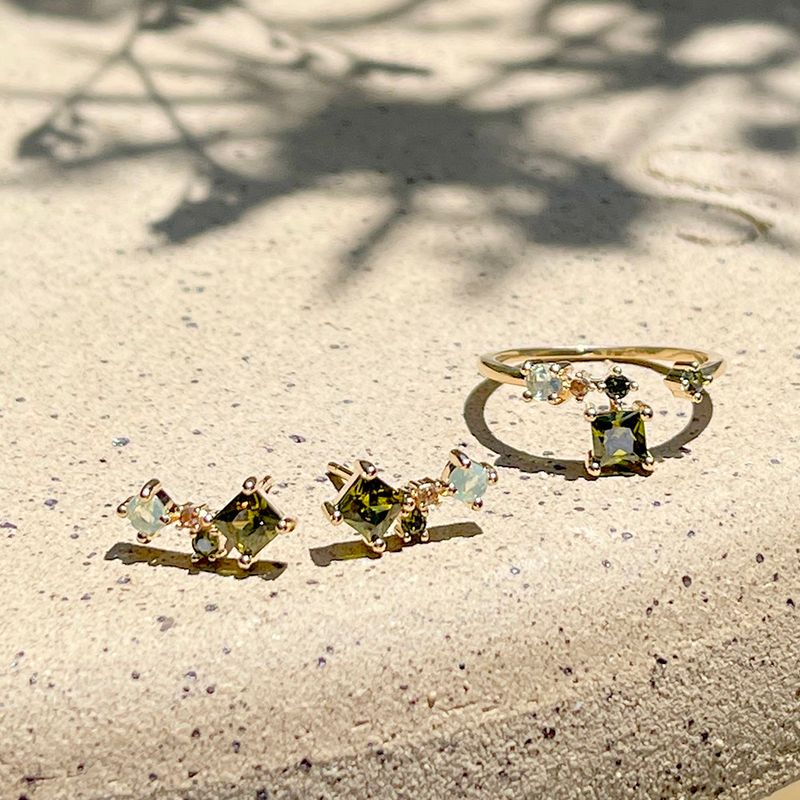 Anel cristal peridoto cristal opala zirconia champagne formas aro19
