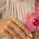 O anel Curvas 6 em 1 encanta com seu design versátil e sofisticado! Banho de ouro 18k e fileiras de zircônias brancas criam um brilho elegante e moderno. Pode ser usado junto ou separado, oferecendo seis combinações em uma única joia. Ideal para quem ama estilo, praticidade e o glamour das peças Santa Prata!