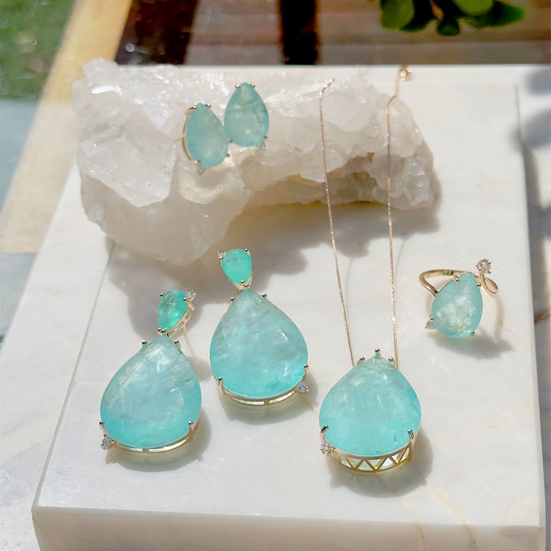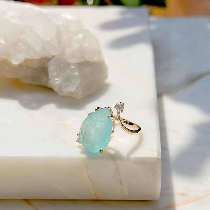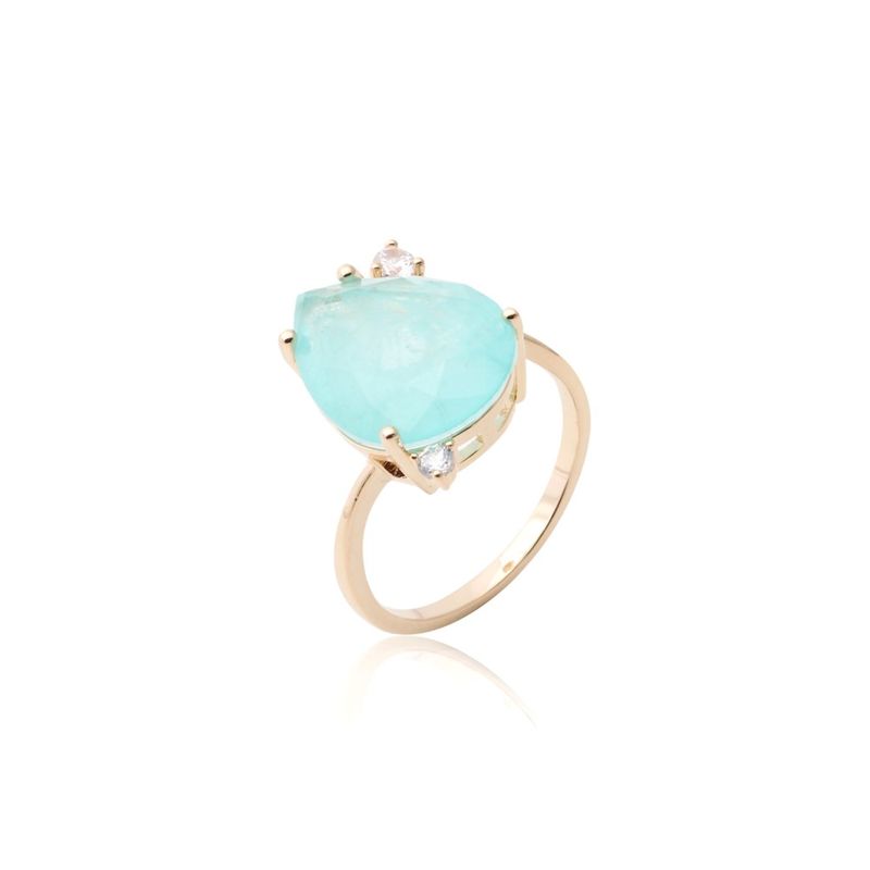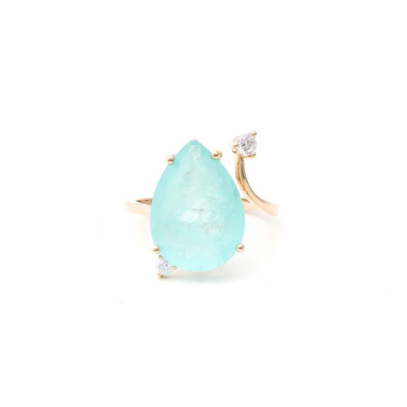 Anel gota de fusion turmalina light com ponto de zircônia branca premium na cravação de garras.