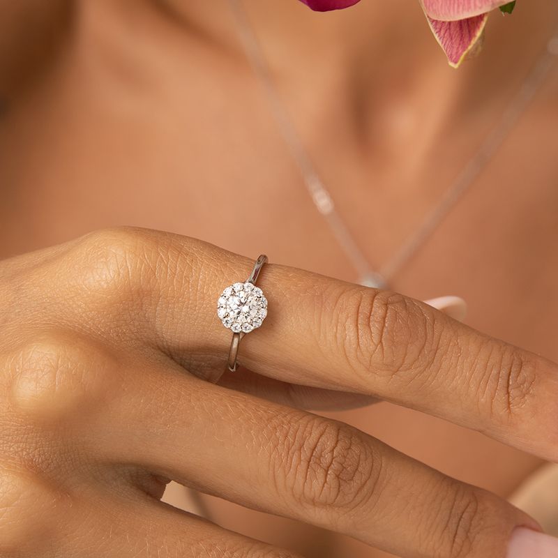 O anel Moissanite Lapidação Brilhante em Prata 925 é o equilíbrio perfeito entre elegância e brilho. A pedra central de 5mm (0,5ct/50 pontos) exibe moissanite de cor D — a mais clara da escala GIA — e pureza VVS1, garantindo brilho intenso e transparência impecável. As zircônias brancas laterais completam o design sofisticado. Acompanha certificado GRA de autenticidade.