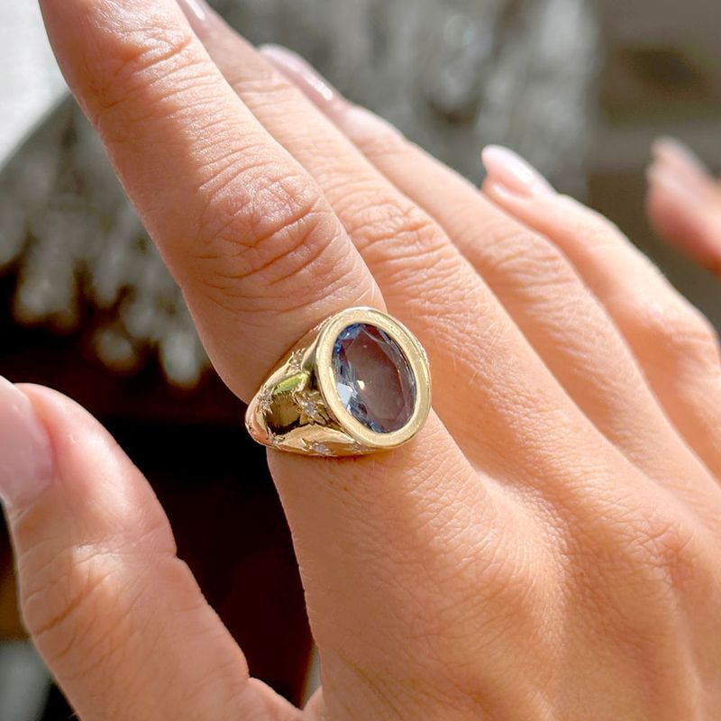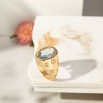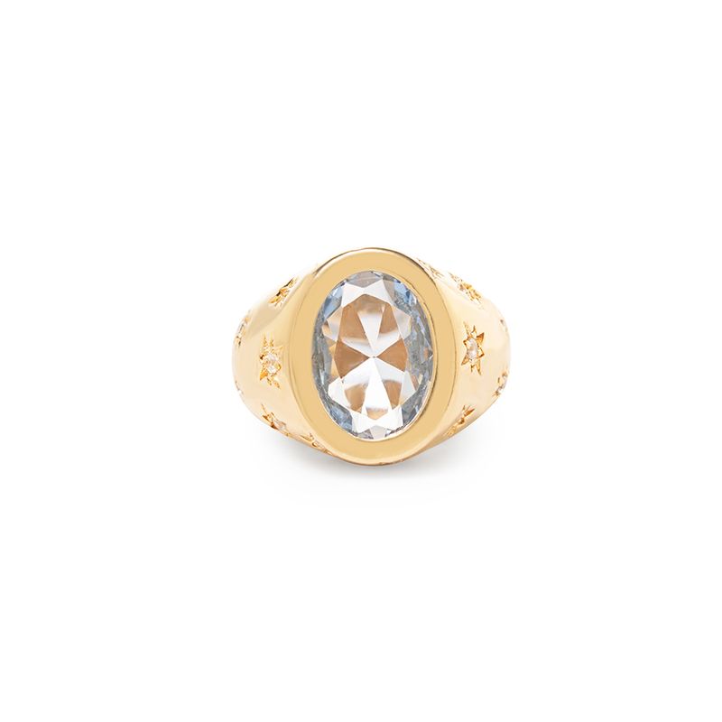Anel Oval Estrelas de Cristal London Blue e Zircônias Brancas - Banho de Ouro 18k