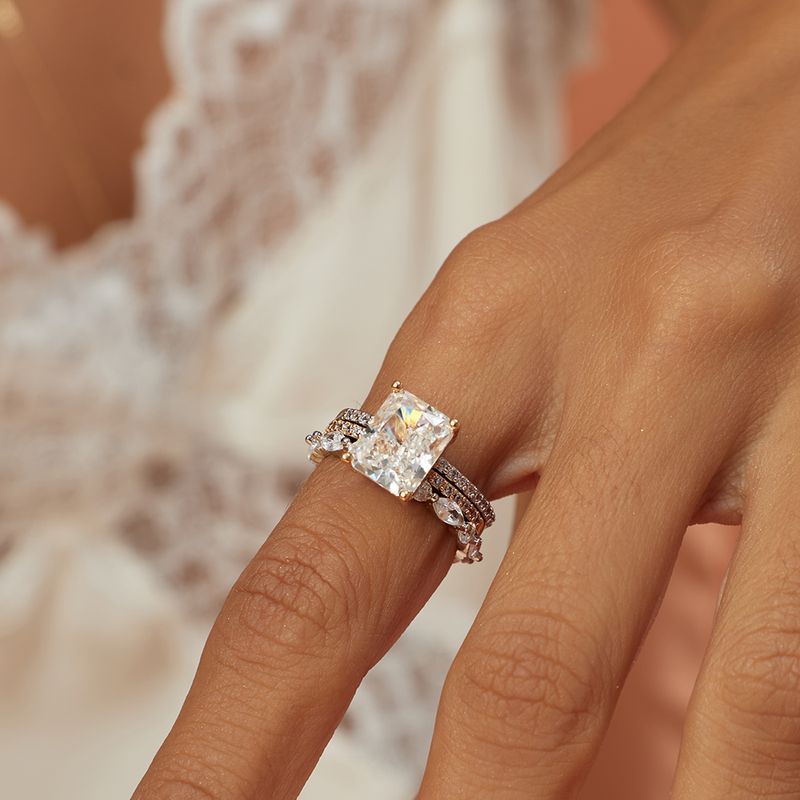 O anel solitário retangular 8x10 é imponente e sofisticado na medida certa. Com solitário em banho de ouro 18k, valoriza o brilho intenso e marcante do formato retangular. As alianças laterais cravejadas com zircônias brancas recebem banho de ródio branco, criando contraste moderno e acabamento impecável. Um modelo luxuoso, elegante e cheio de personalidade.