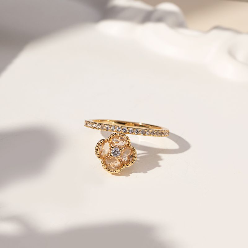 AnéisBanho de Ouro 18kAnel Trevo com Cristal Rodolita e Zircônias Brancas - Banho de Ouro 18k