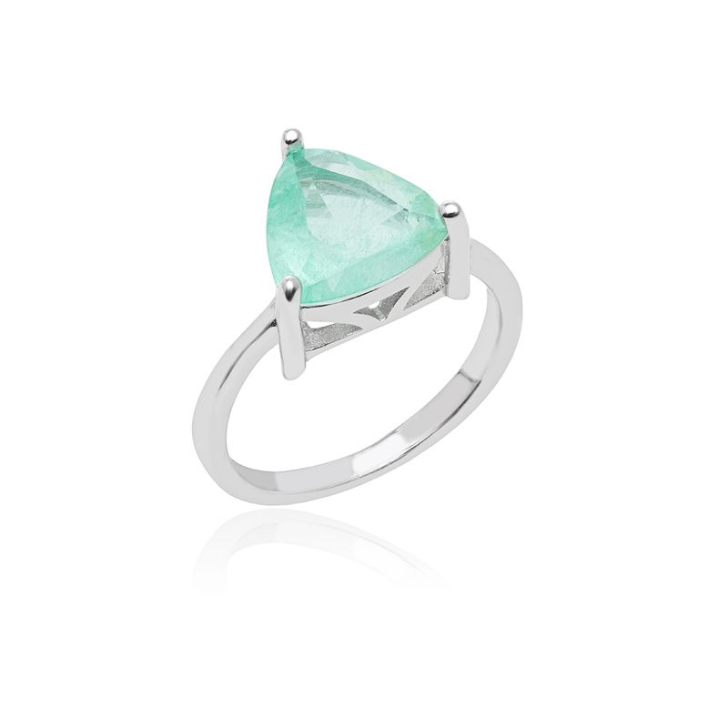 O anel em prata 925 traz um design triangular cheio de estilo. A fusion esmeralda colombiana aparece com um verde intenso que chama atenção e deixa a peça super elegante. Moderno e sofisticado, é aquele detalhe perfeito para dar mais charme e personalidade ao visual.
