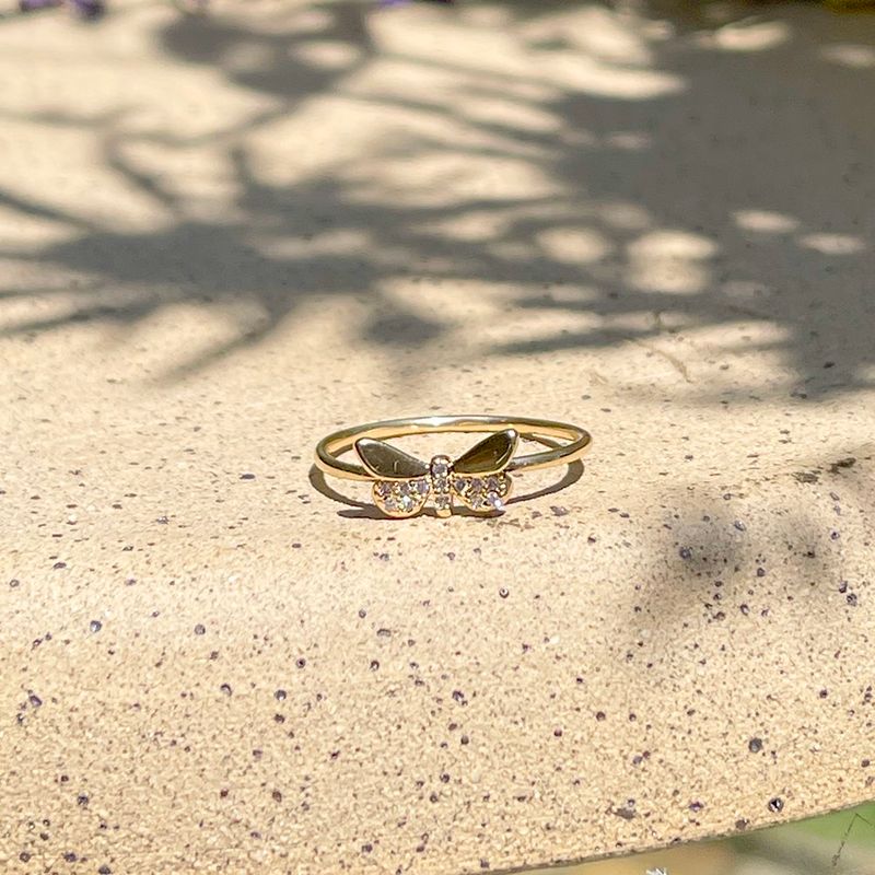Anel Libélula Zircônia Branca Banho de Ouro 18K (SUPER PROMOÇÃO) aro19