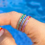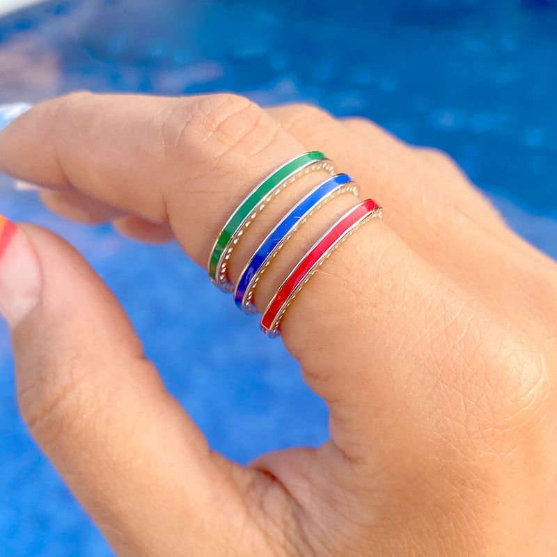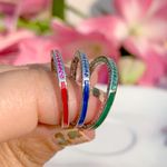 Anel zirconia vermelha zirconia azul escuro zirconia verde aliança fininha trio aro17