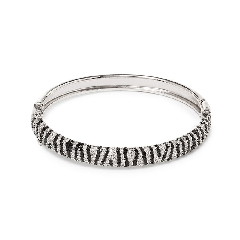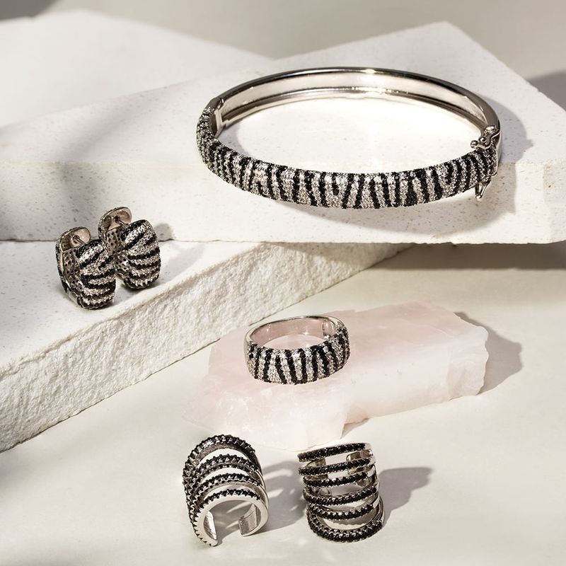 O bracelete animal print, cravejado com zircônias negras e brancas, fecho trava e banho de ródio branco, é ideal para quem ama acessórios cheios de estilo. Sua padronagem moderna e brilho elegante elevam qualquer produção com um toque fashion e sofisticado.