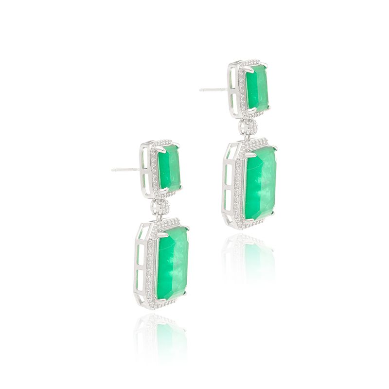 O brinco 2 Retângulos Bordados em Prata 925 combina a intensidade da Fusion Esmeralda com o brilho elegante das zircônias brancas, criando um visual moderno e sofisticado. O design em dois retângulos traz leveza, movimento e um toque jovem. Uma peça marcante, estilosa e perfeita para quem ama acessórios com cor, brilho e muita personalidade.