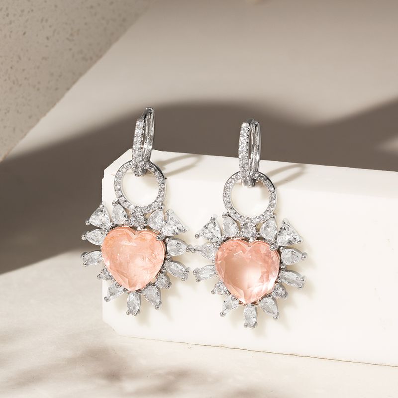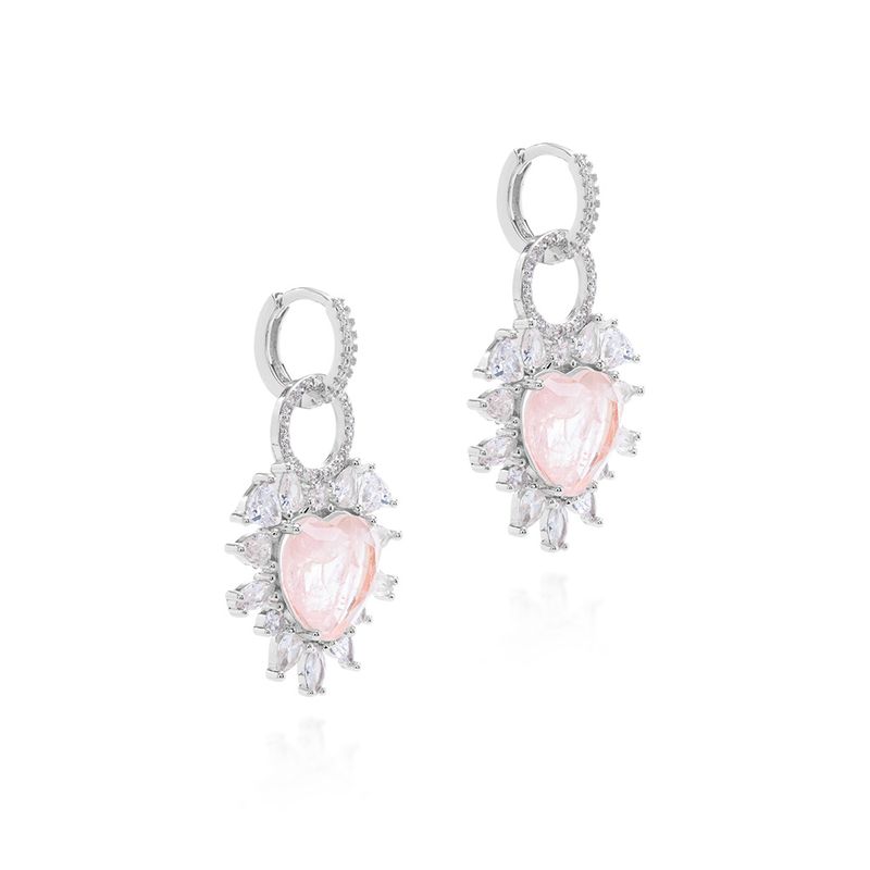 O brinco argola click com coração de fusion morganita e borda cravejada de zircônias brancas navete e redondas, com banho de ródio branco, é uma peça elegante e charmosa. O design combina o brilho delicado das zircônias com a sofisticação da morganita, tornando-o ideal para destacar o visual com sutileza e estilo.