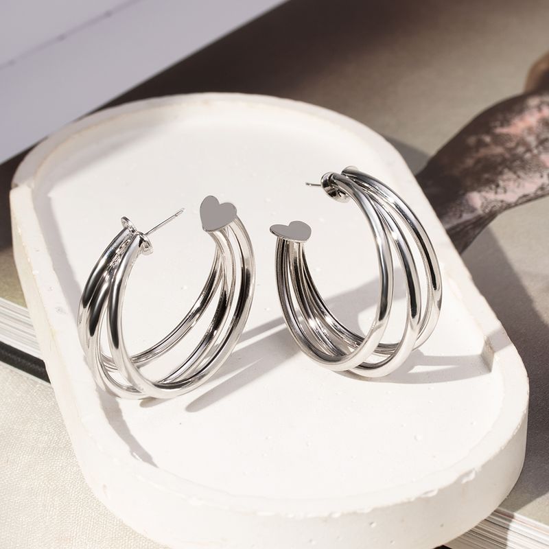 O brinco argola lisa 42mm com três linhas já é estiloso, mas o coração deixa tudo ainda mais fofo! No banho de ródio branco, ele ganha aquele brilho fresquinho e moderno. Leve, confortável e cheio de personalidade — o acessório perfeito pra deixar qualquer look mais charmoso sem esforço.