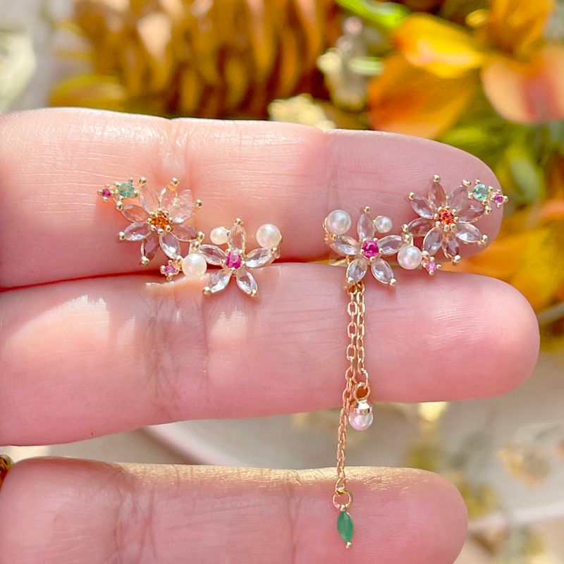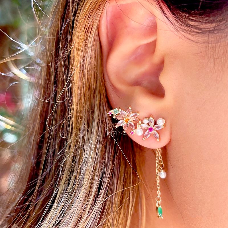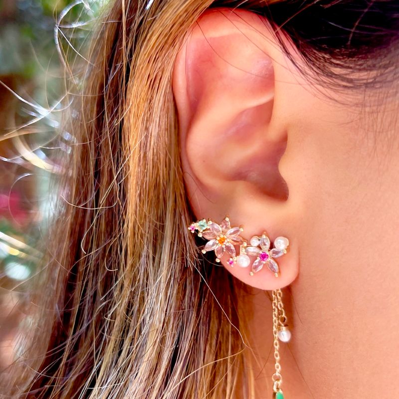 Brinco cristal esmeralda cristal tanzanita perola jardim