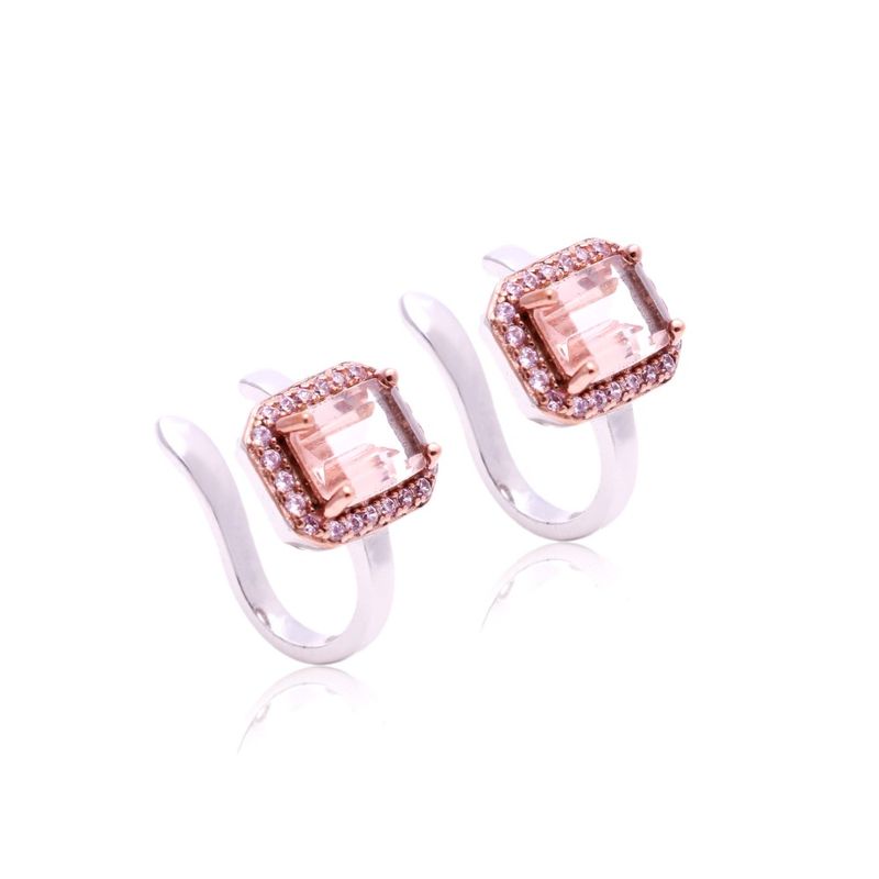 Brinco cristal morganita zirconia rosa piercing retangulos cravejado (par) (promoção 50%)