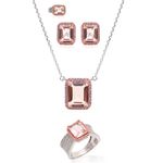 Brinco cristal morganita zirconia rosa zirconia branca piercing retangulo bordado