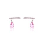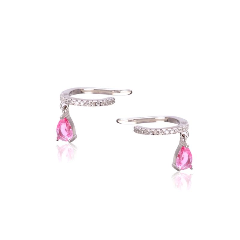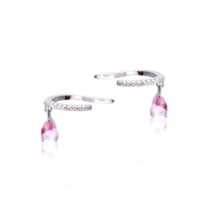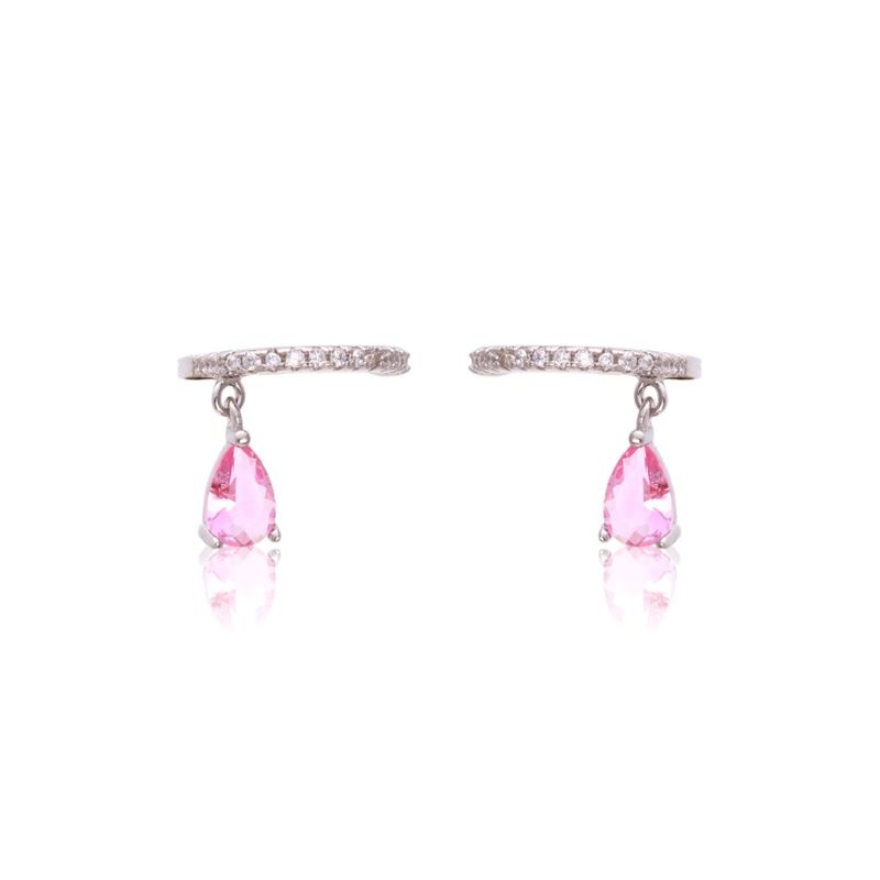 Brinco cristal turmalina rosa zirconia branca ear hook gotinha (par)