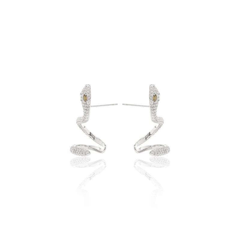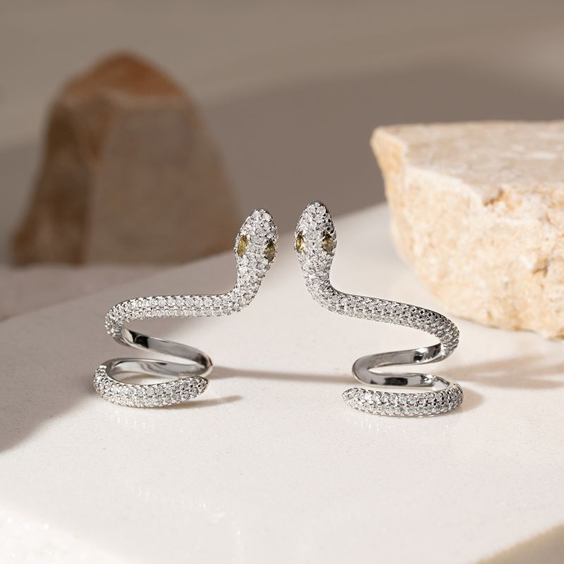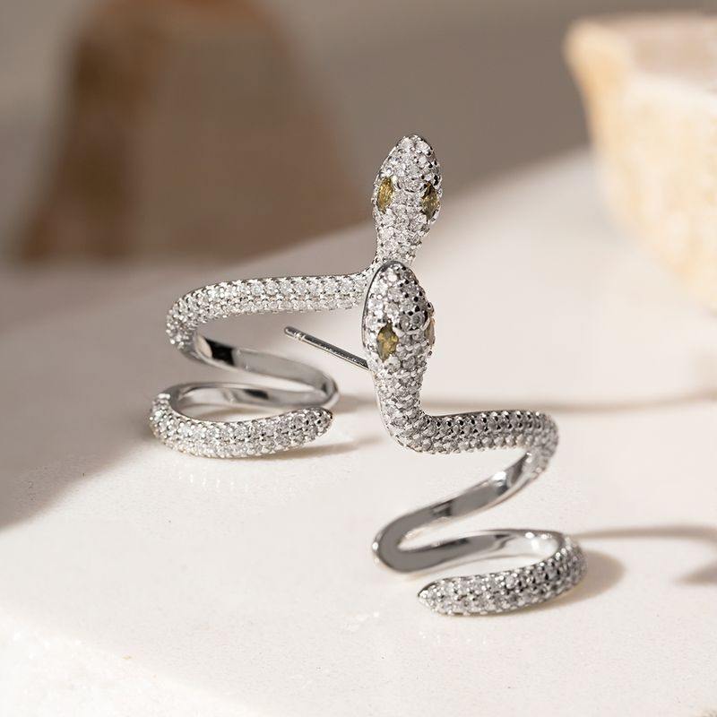 O brinco ear cuff serpente com cristal peridoto e zircônia branca é uma peça moderna e elegante, ideal para quem tem personalidade e estilo marcante. O cristal peridoto marca os olhos da serpente, enquanto seu corpo é completamente microcravejado com zircônias brancas, criando um brilho deslumbrante e um design ousado.