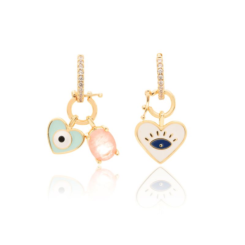O brinco Earbling Coração e Oval Mix and Match em banho de ouro 18k é puro luxo com um toque moderno! ¿s Fusion Morganita em tons rosados, detalhes de esmalte e resina que realçam o design e zircônias brancas que garantem brilho sofisticado. O formato assimétrico mix and match confere um visual atual, elegante e cheio de personalidade.