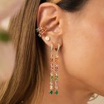 BrincosArgolasEar BlingBanho de Ouro 18kBrinco Earbling Longo com Cristal Esmeralda, Cristal Turmalina Rosa, Cristal Podange e Zircônias Brancas - Banho de Ouro 18k