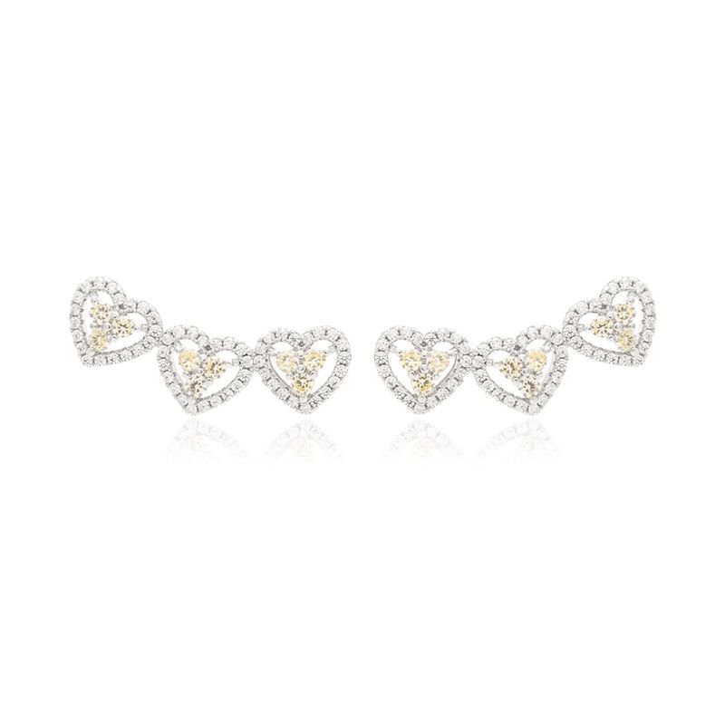 O brinco earcuff de corações é puro encanto! As zircônias yellow fancy trazem um toque de cor alegre, enquanto as zircônias brancas garantem muito brilho. Em prata 925, é aquele brinco estiloso que transforma qualquer look com leveza e personalidade.