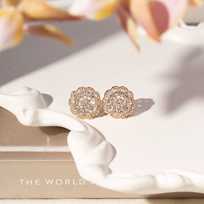 Brinco Flor com Zircônias Brancas - Banho de Ouro 18k