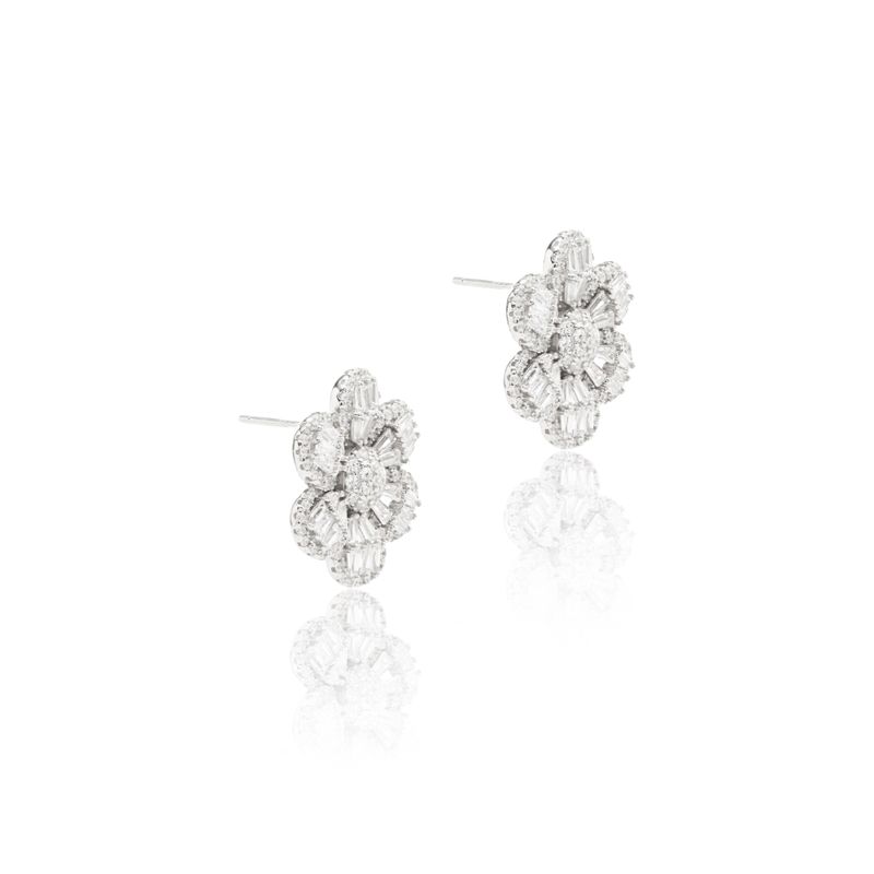 BrincosPrata 925Brinco Flor com Zircônias Brancas Baguete - Prata 925