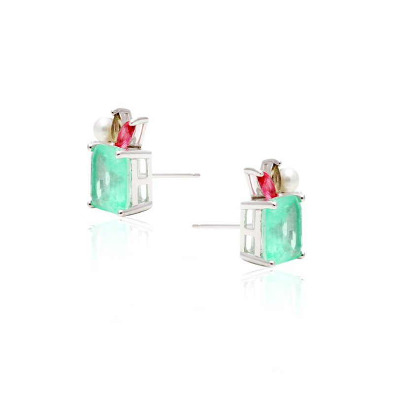 Brinco fusion esmeralda colombiana cristal turmalina rosa perola arranjo