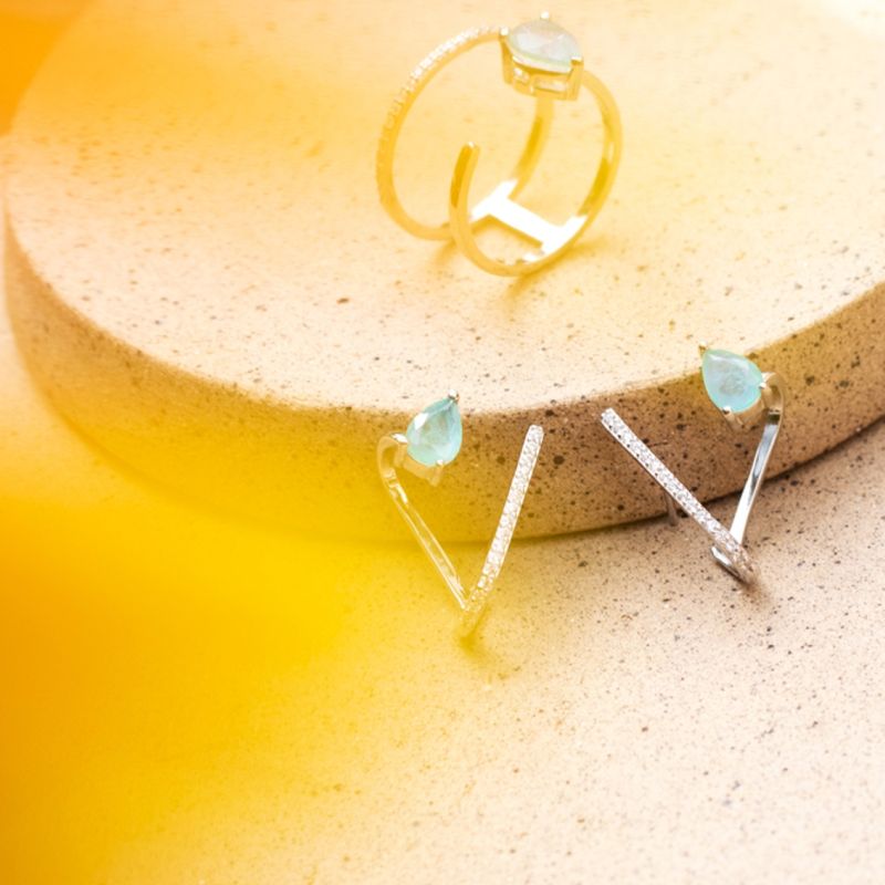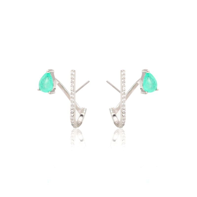 Delicado, o brinco tem fusion esmeralda colombiana como pedra principal e zircônias brancas cravejadas. Ideal para compor visuais discretos e elegantes.