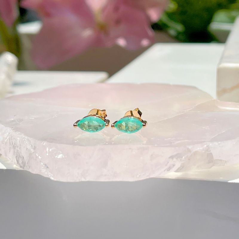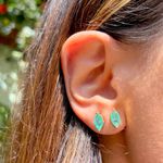 O brinco banhado a ouro 18k contém fusion turmalina, no formato de navete e laterais vazadas.