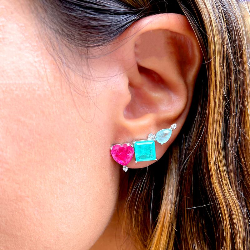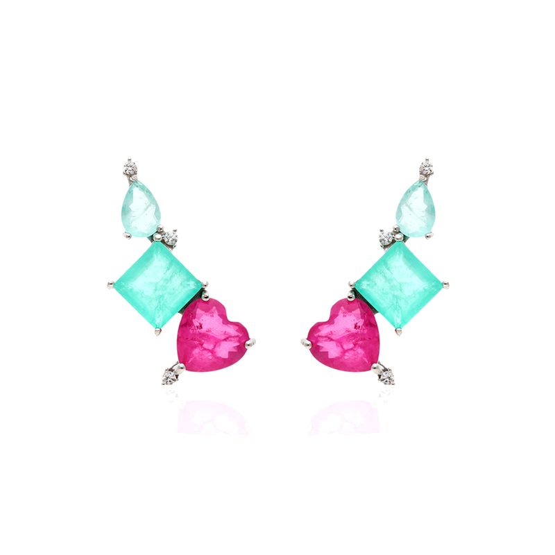Brinco fusion turmalina rosa fusion turmalina paraiba fusion turmalina light ear cuff formas