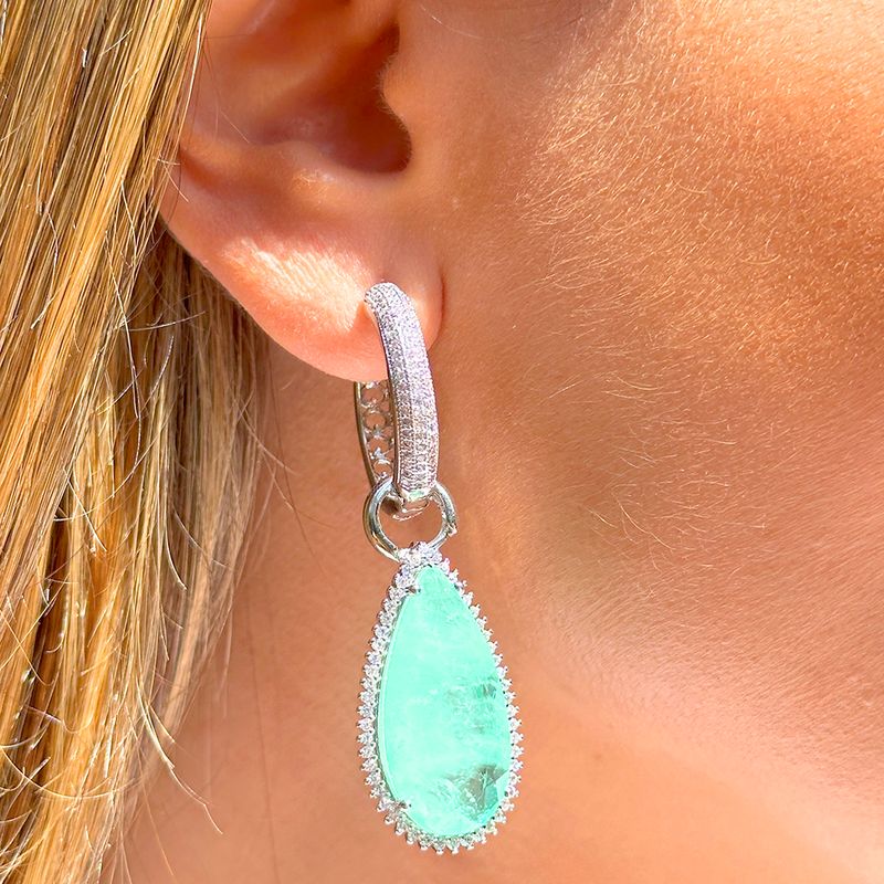 O brinco gota de fusion esmeralda colombiana cravejado com zircônias brancas é uma peça versátil, que permite o uso tanto com o pêndulo em forma de gota de fusion esmeralda colombiana quanto apenas com a argola cravejada. Elegante e sofisticado, é perfeito para compor looks que pedem um toque de refinamento.