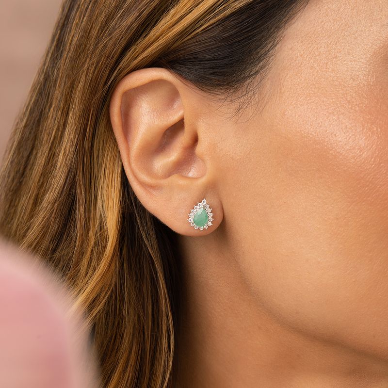 O brinco é um símbolo de elegância e sofisticação! Cada peça traz uma esmeralda natural em lapidação gota de aproximadamente 0,65 ct, cercada por moissanites melee de 1,5mm na cor D e pureza VVS1, que proporcionam um brilho intenso e refinado. Produzido em prata 925 com acabamento de alta joalheria, o contraste entre o verde vibrante da esmeralda e o brilho dos moissanites cria uma joia clássica e atemporal.
