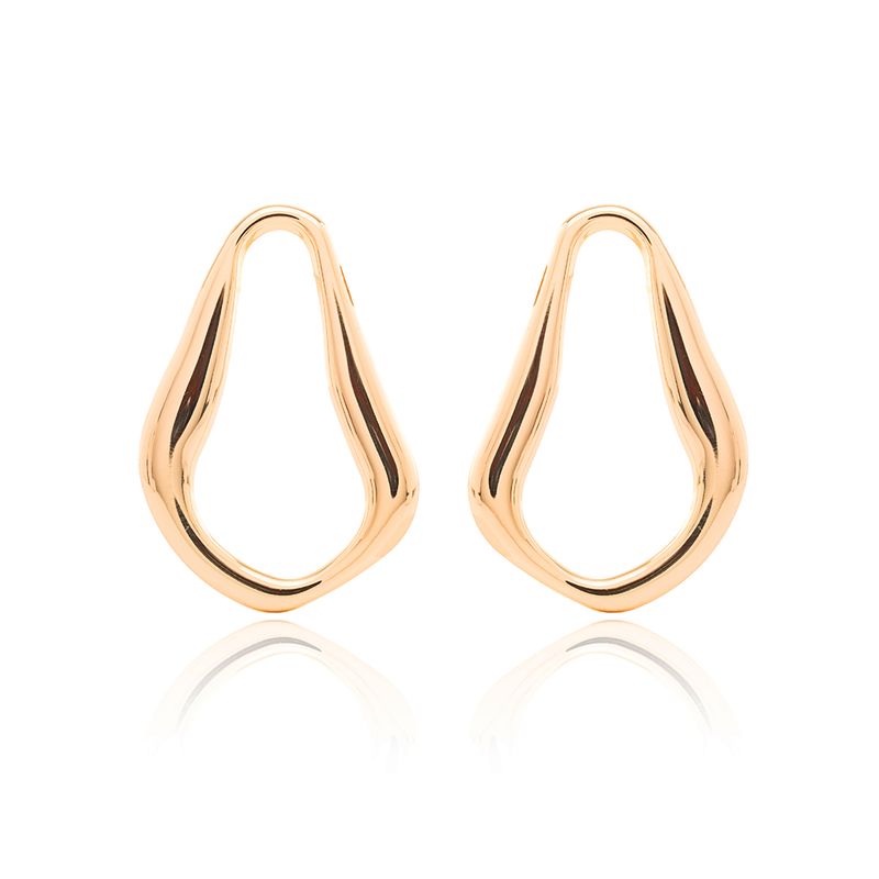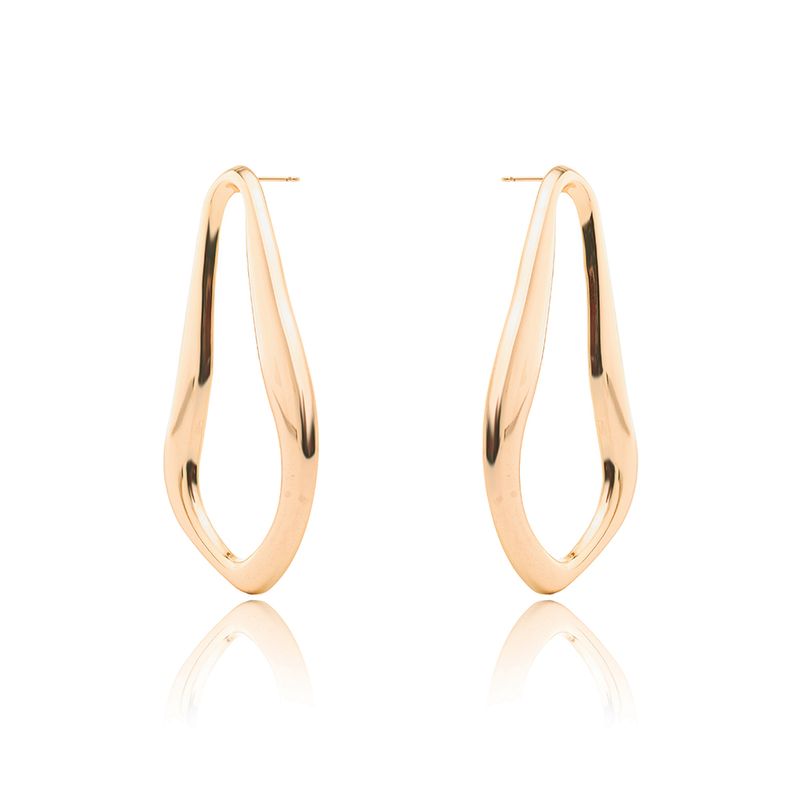 O brinco orgânico vazado com banho de ouro 18k traz design liso e alongado de 67mm. Uma peça impactante, moderna e elegante, perfeita para quem busca estilo marcante e sofisticado em qualquer produção.
