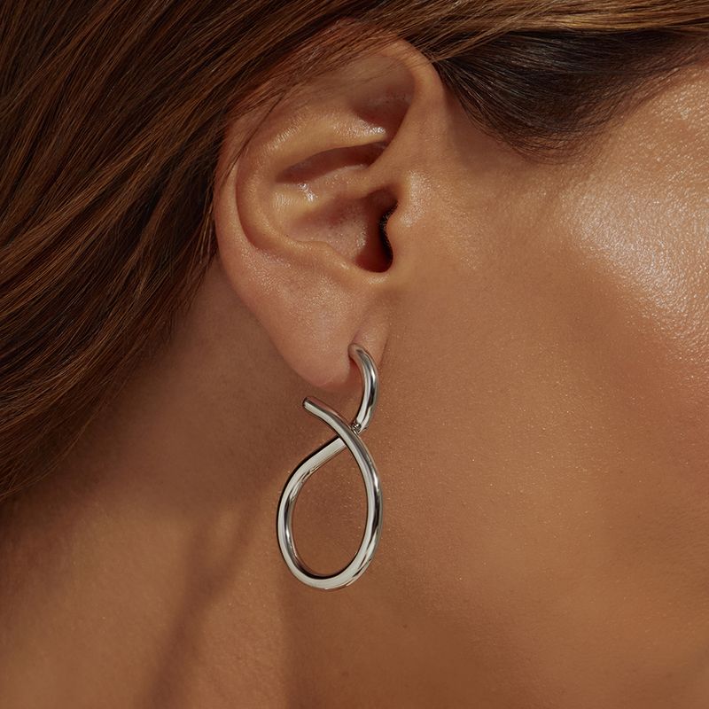 Brinco Liso Argola Torcida - Banho de Ródio Branco