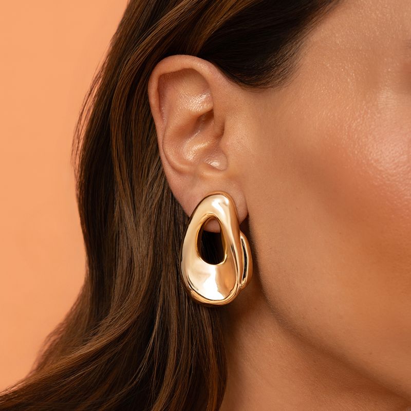 O brinco liso orgânic vazado é aquele dourado nada óbvio que transforma o look! Com formato orgânico super moderno e detalhe vazado no centro, ele tem banho de ouro 18k e brilho espelhado incrível. Estiloso, atual e perfeito pra quem ama acessórios com personalidade.