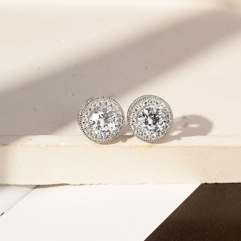 BrincosPrata 925Brinco Redondo com Zircônias Brancas - Prata 925