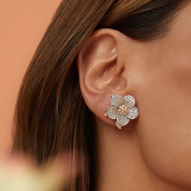 O brinco versátil flor e pétalas é aquele dois em um apaixonante! Você pode usar completo ou só a flor pra um look mais delicado. O miolo e as pétalas em ouro 18k criam um contraste incrível com a flor em ródio branco. As zircônias brancas deixam tudo ainda mais iluminado. Moderno, estiloso e super versátil!
