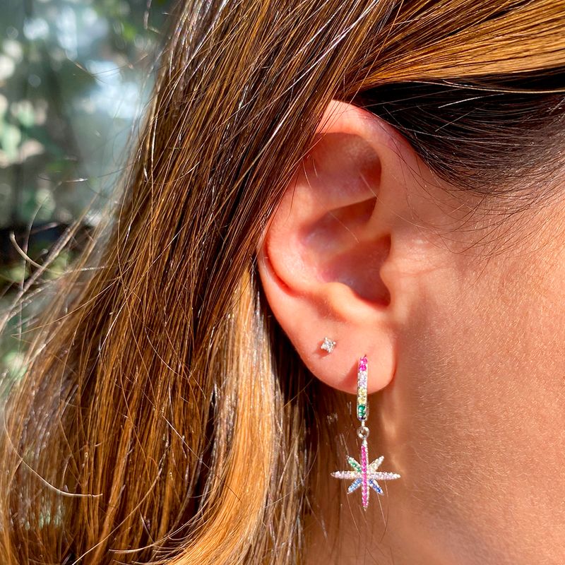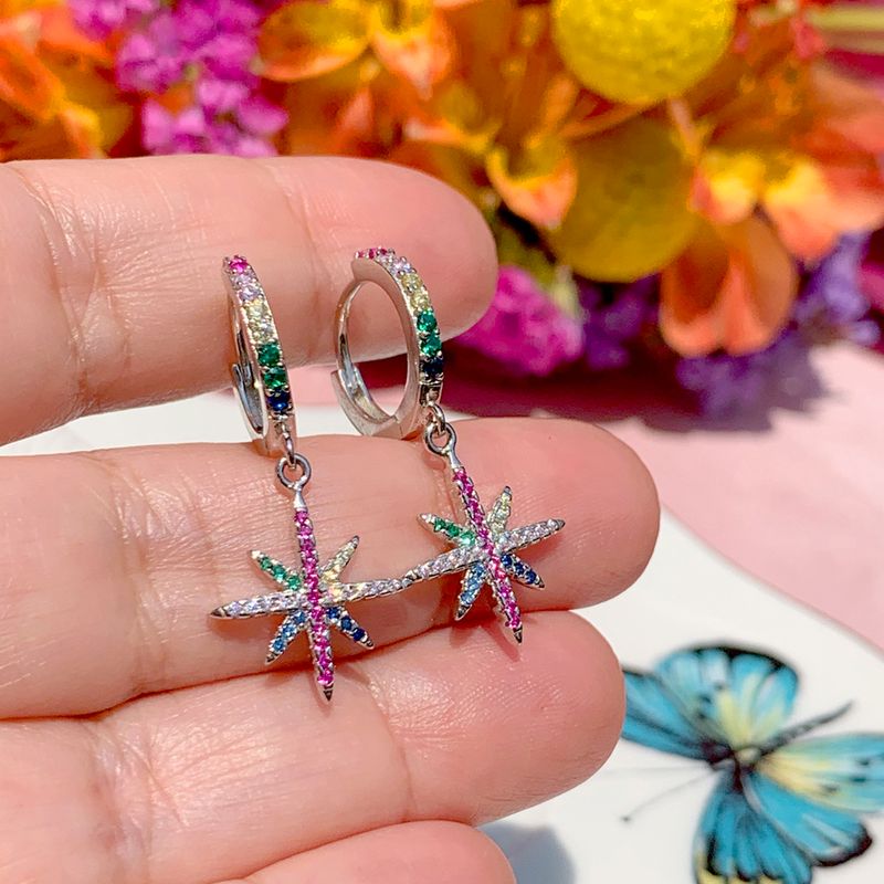 Brinco zirconia rosa zirconia vermelha zirconia azul escuro ear bling estrelinha colorida