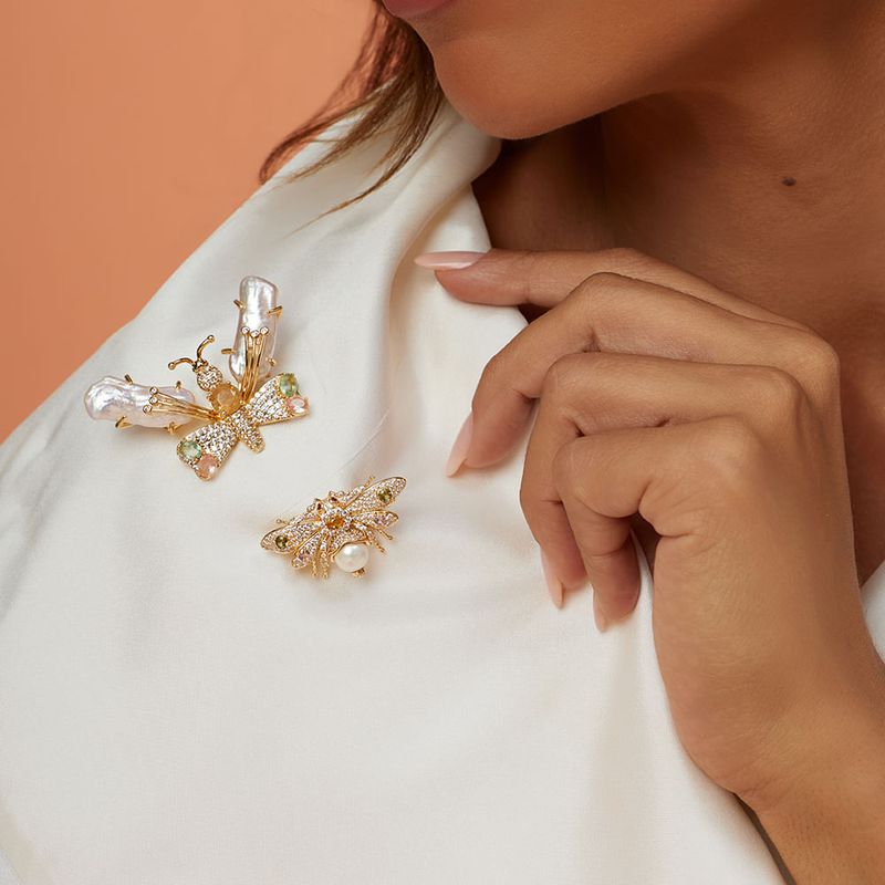 O broche bugs é aquele detalhe encantador que transforma qualquer look! Com pérola central delicada, mix de cristais coloridos e asas cravejadas com zircônias brancas, ele brilha na medida certa. O banho de ouro 18k deixa tudo ainda mais sofisticado. Charmoso, moderno e cheio de personalidade.