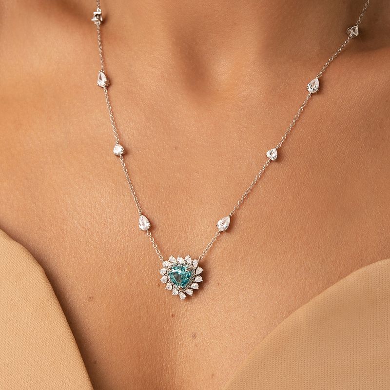 O colar Coração Crushed Ice Cutting Sky Blue em Prata 925 traz um coração azul claro com facetação crushed ice, que deixa o brilho supermoderno e único. As zircônias brancas 5A iluminam ainda mais a peça, criando um visual jovem, romântico e elegante. Com 50cm, ele fica perfeito no colo, leve, delicado e cheio de charme para qualquer look.