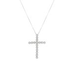 Colar cruz inteira de flores zircônia branca prata 925 50cm