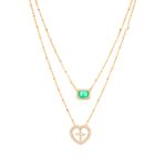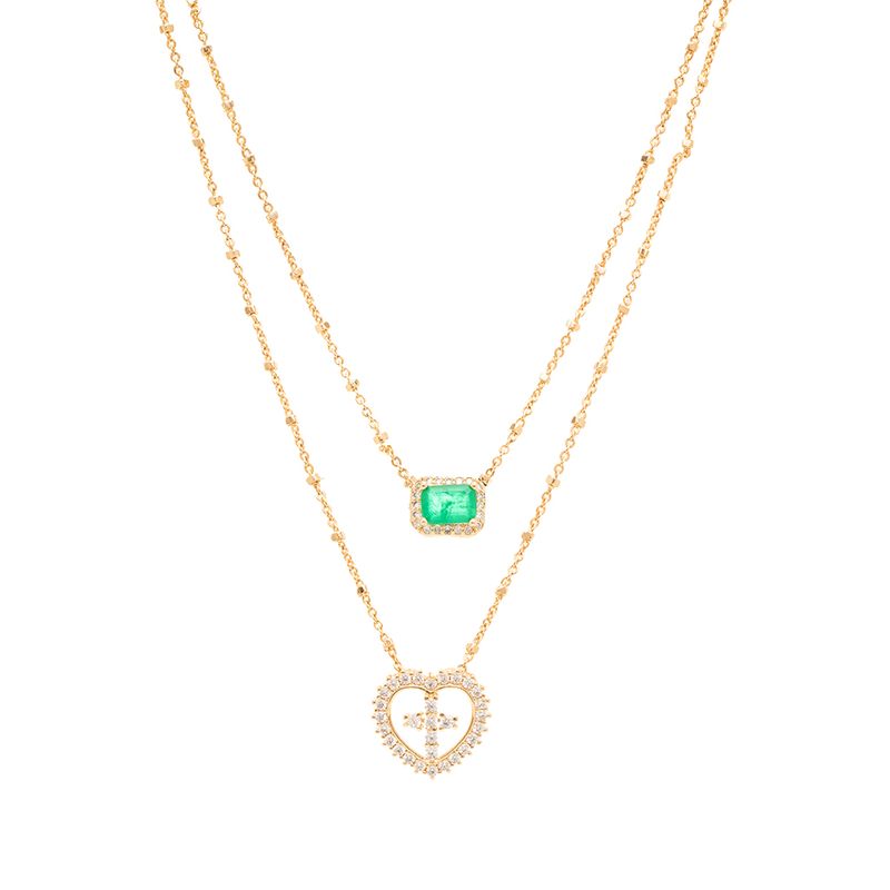 O colar escapulário é aquele mix perfeito de estilo e charme! O retângulo de fusion esmeralda dá um toque moderno, enquanto o coração cravejado brilha super bem no ouro 18k. Com 65cm, ele fica leve, alongado e mega estiloso — perfeito pra quem ama acessórios diferentes e cheios de personalidade.