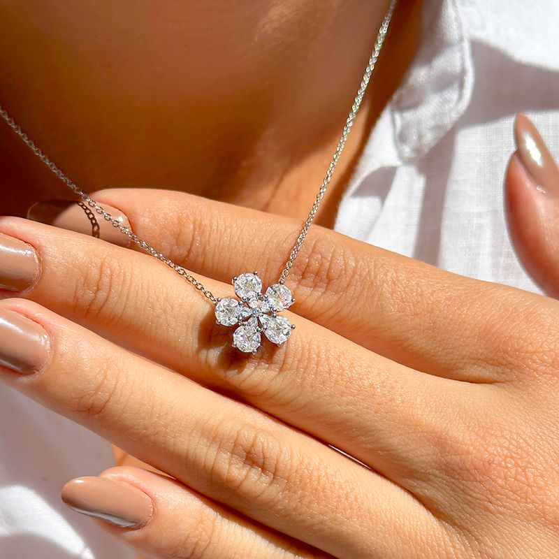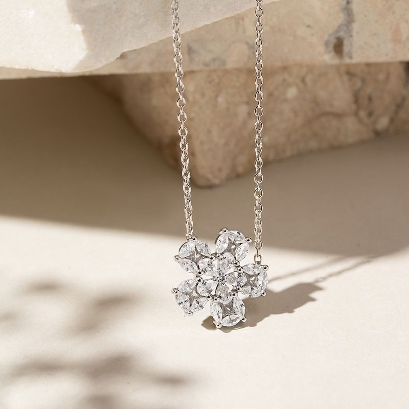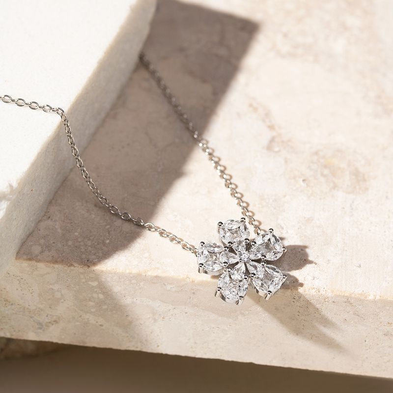 O colar flor 5 pétalas cravejadas com zircônia branca em navetes e gotas é a escolha perfeita para quem deseja um visual delicado, mas cheio de brilho. Com uma corrente de elos redondos e fecho lagosta, ele apresenta um encantador pingente em formato de flor, meticulosamente cravejado com zircônias brancas em cortes navete e gota. Este colar é uma peça linda e versátil, ideal para diversas ocasiões.