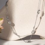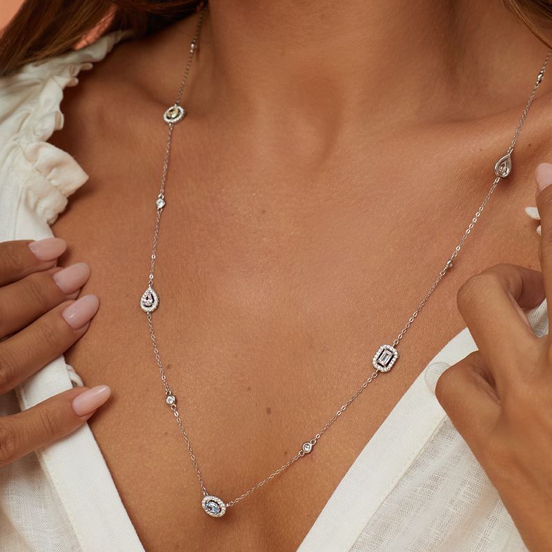 O colar Formas Color com Cristais Crushed Ice Cutting Fancy Yellow, Fancy Pink e Fancy Light Blue em Prata 925 é vibrante e sofisticado. A lapidação crushed ice intensifica o brilho e cria efeito luminoso único, enquanto as zircônias brancas equilibram a composição. Com 75cm, alonga o visual e traz elegância moderna.