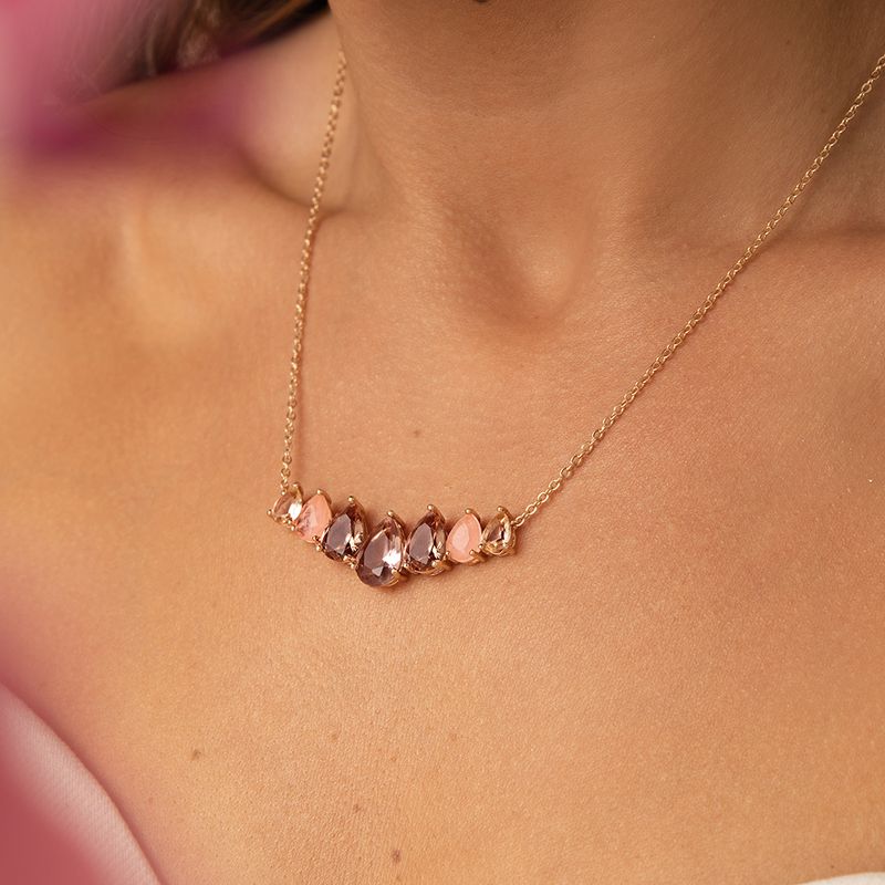 O colar gotas com fusion morganita, cristal rodolita e cristal âmbar traz um mix de cores moderno e elegante. As gotinhas criam um visual leve e super iluminado, enquanto o banho de ouro 18k valoriza cada detalhe. Com 50cm, o caimento fica perfeito e estiloso. Um colar sofisticado, jovem e cheio de personalidade, ideal para realçar qualquer look.