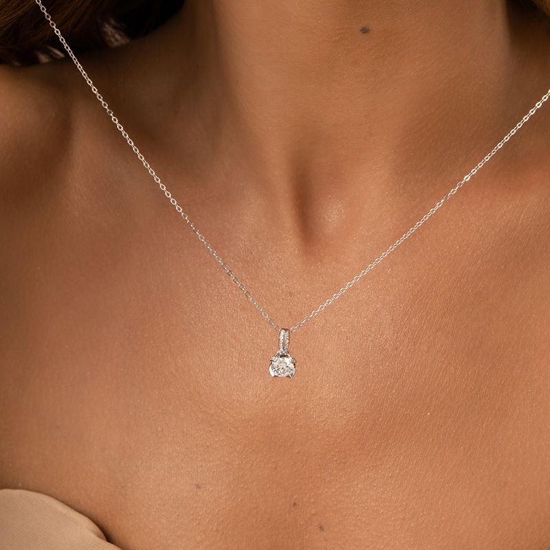 O colar Moissanite Lapidação Brilhante em Prata 925 é uma joia deslumbrante! A pedra central de 6,5mm (1,0ct/100 pontos) apresenta moissanite de cor D — a mais clara da escala GIA — e pureza VVS1, garantindo brilho intenso e transparência impecável. Detalhes em zircônias brancas completam o design luxuoso e atemporal. Corrente de 50cm com fecho seguro. Acompanha certificado GRA de autenticidade.
