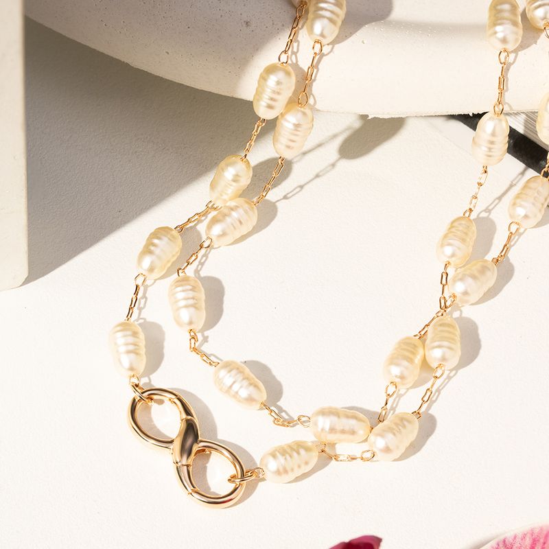 O colar de pérolas coreanas com fecho de infinito liso traz um visual moderno e delicado em 80cm de pura elegância. No banho de ouro 18k, ele ganha brilho suave e um toque sofisticado. O fecho em formato de infinito adiciona charme e simbolismo, tornando a peça leve, versátil e perfeita para iluminar qualquer look.