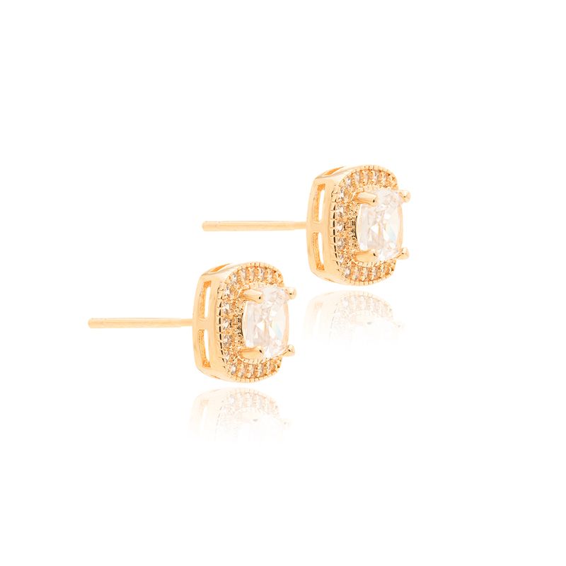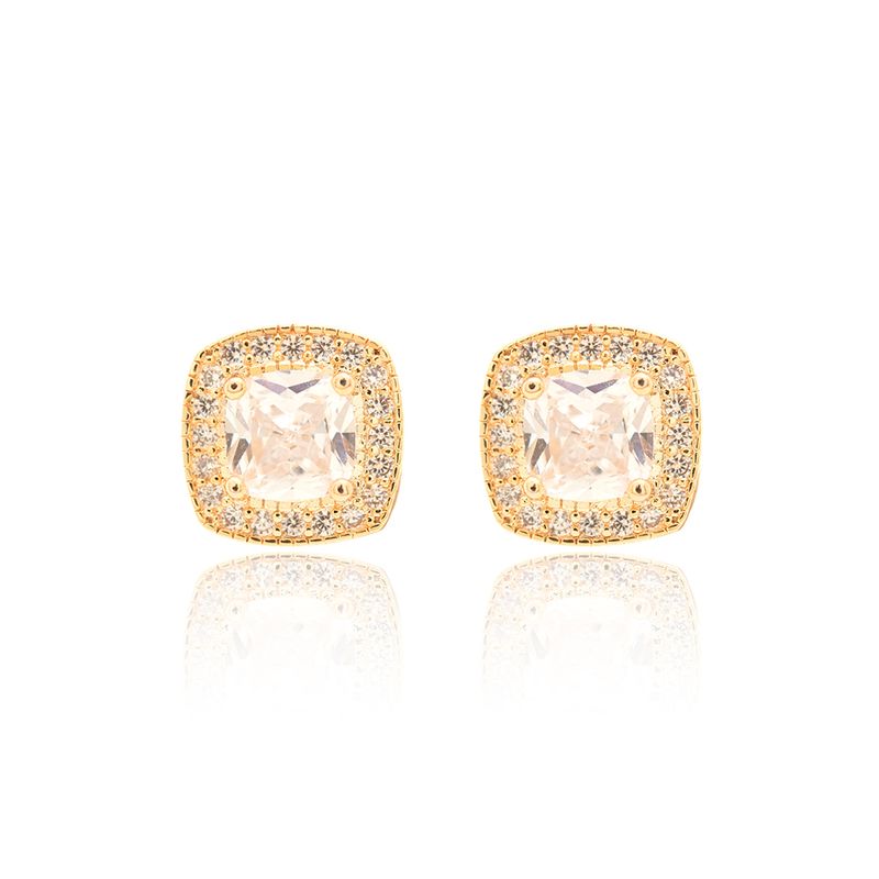 Um conjunto que é puro glamour! O brinco e colar quadrado vêm cheios de zircônias brancas e com banho dourado 18k que brilha demais! A corrente de 50cm tem o caimento perfeito pra deixar o visual incrível. Um toque moderno, elegante e cheio de luz pra você arrasar!