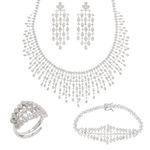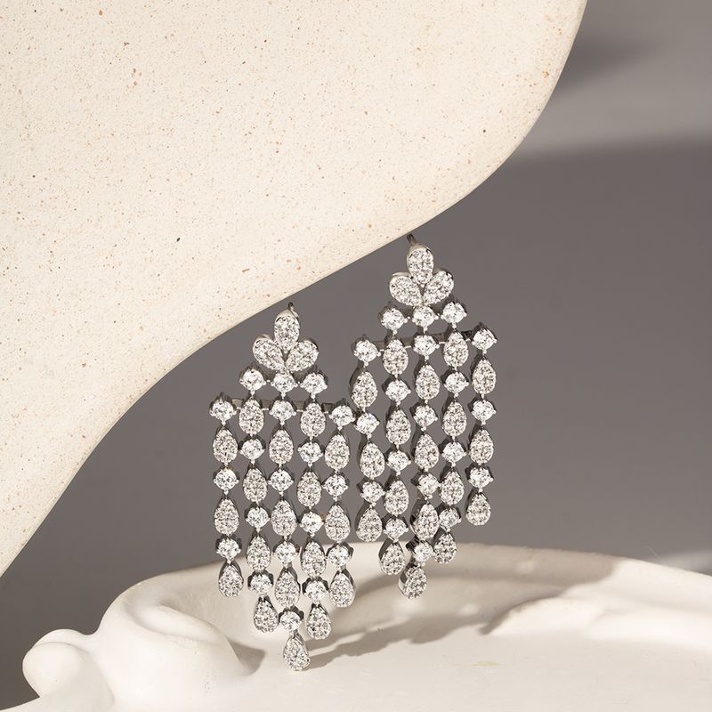 O conjunto maxi com brinco, colar de 50cm, anel e pulseira de 19cm é puro luxo e sofisticação. Com banho de ródio branco, todas as peças são inteiramente cravejadas com zircônias brancas que garantem brilho intenso e acabamento impecável. Um conjunto marcante, elegante e moderno, perfeito para quem ama presença e brilho em produções especiais.